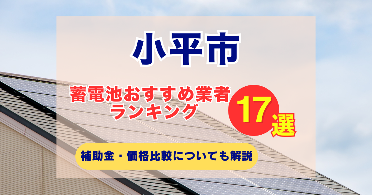 この記事では、小平市でおすすめの蓄電池業者17選をご紹介しています。