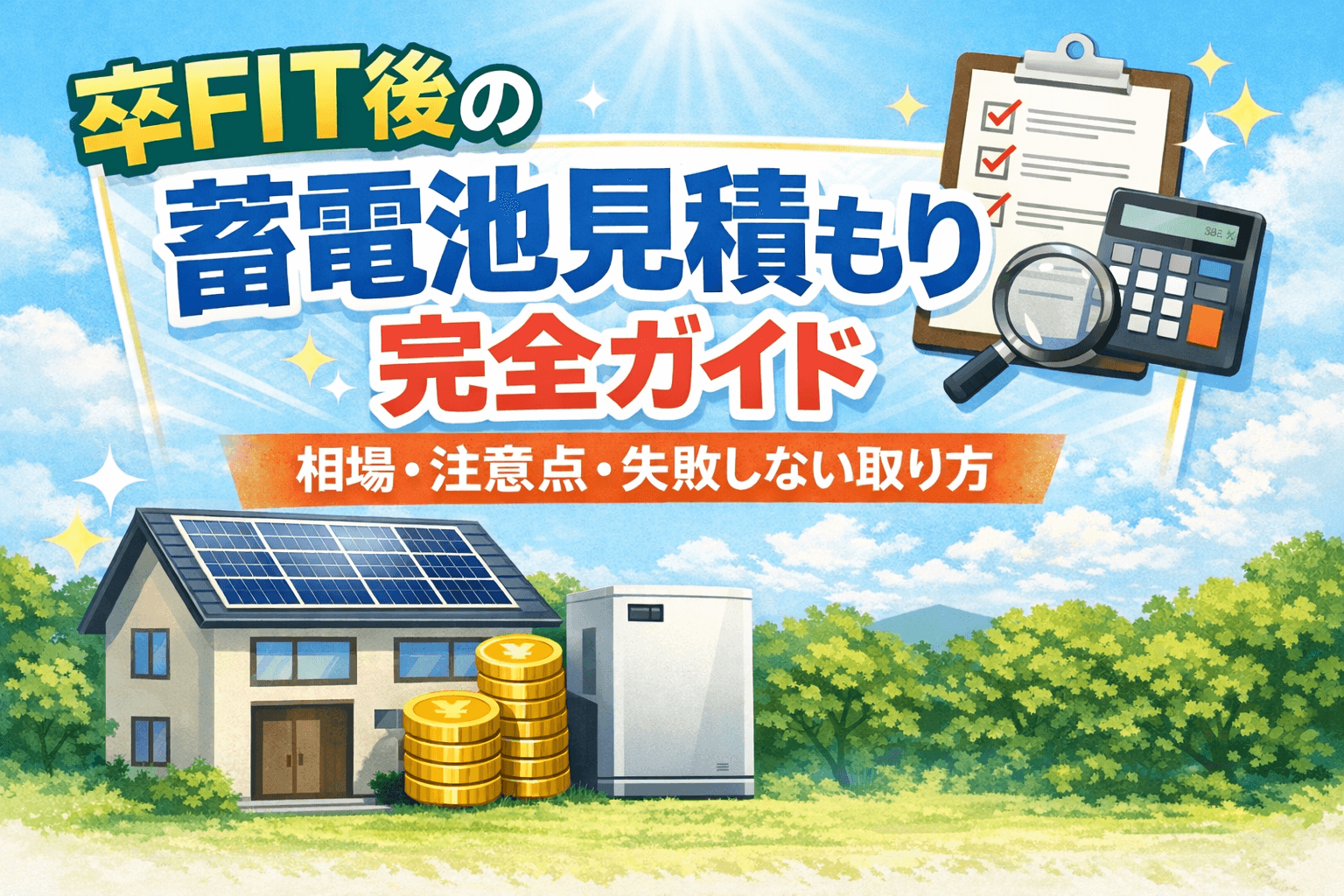 卒FIT後は売電価格が下がり、蓄電池を検討する家庭が増えています。しかし、メーカーや容量、業者によって価格差が大きく、見積もりの取り方次第で数十万円損することもあります。