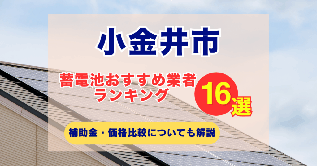 小金井市でおすすめの蓄電池業者16選!補助金サポートや口コミを徹底調査